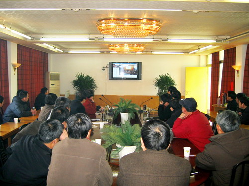 经过近一个月来紧张努力,继农垦OA内部办公网投入运行之后,安徽农垦集团公司视频会议系统全部安装调试完毕,1月2日上午正式开通。集团公司全体领导在主会场通过视频与垦区各分会场的企业负责人和部分机关工作人员见面。集团公司党委书记、董事长田文俊和总经理李卓民分别向分会场的同志表示新年祝贺,并鼓励农垦干部职工在新的一年里更奋发有为,再创新业绩。同时,通过视频系统向全垦区播放了刚刚摄制完成的农垦电视宣传片——《奋进中的安徽农垦》。会议视频系统的成功安装,标志着农垦办公水平和条件迈上了一个的台阶。图为主、分会场。