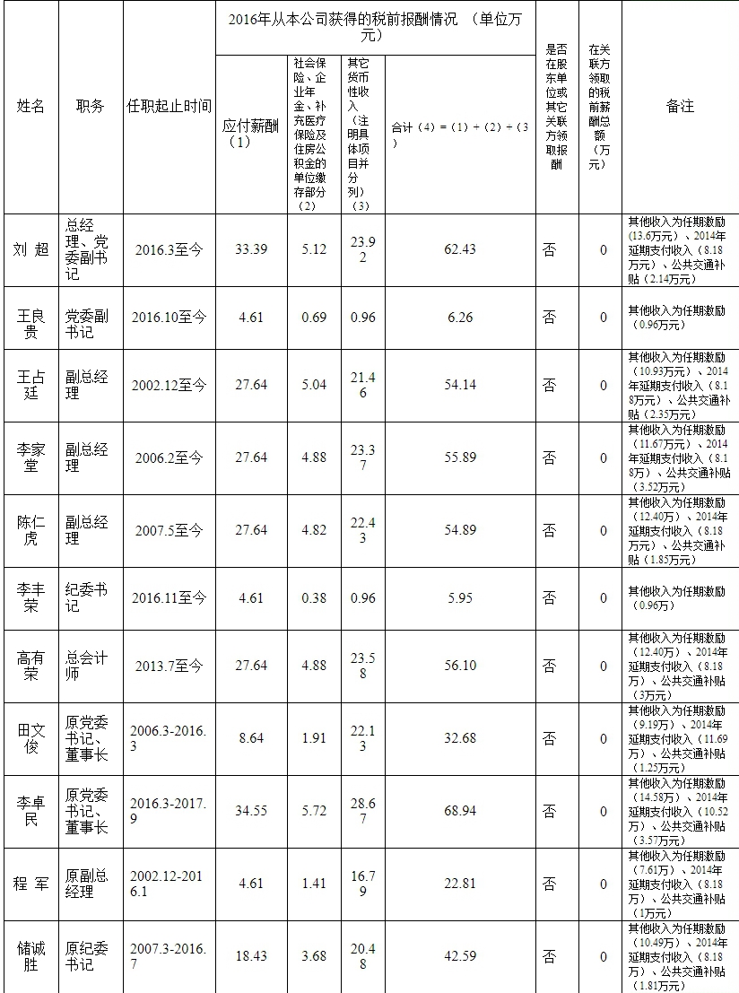 备注:上表披露的企业董事、高级管理人员是指纳入省委、省国资委管理的企业高管,其中第(1)项“应付薪酬”由省国资委核定。