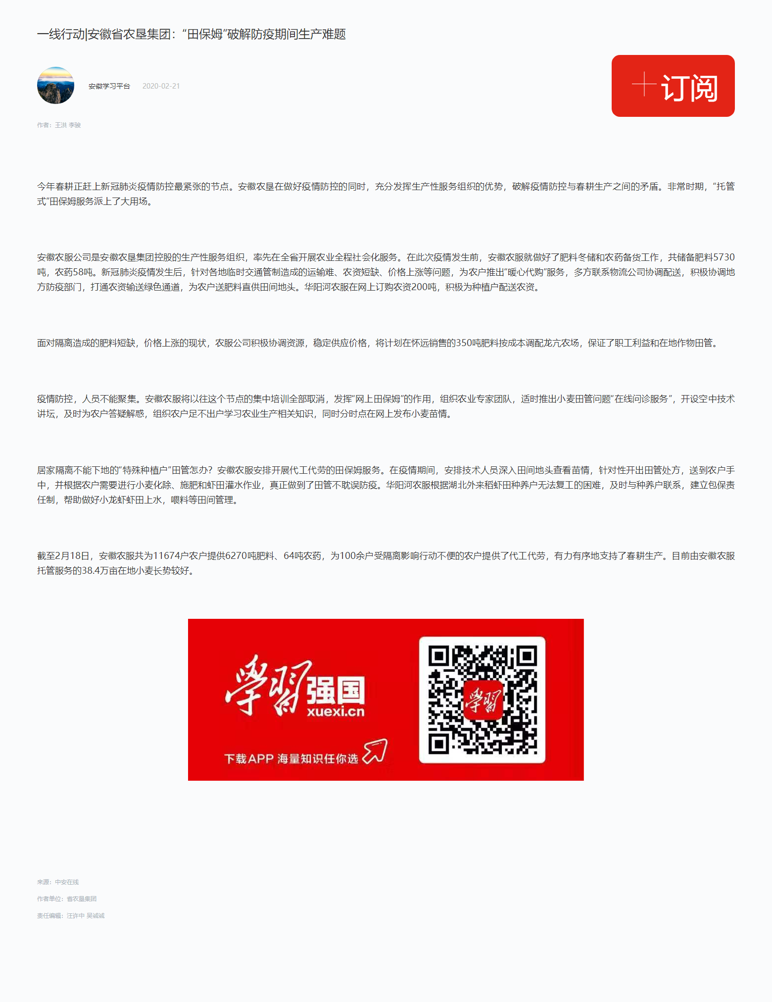学习强国:安徽农垦集团:“田保姆”破解防疫期间生产难题
