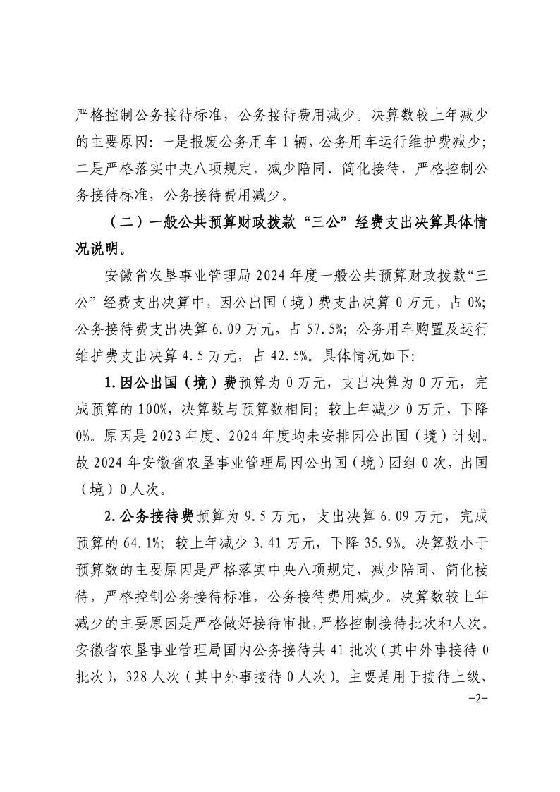 安徽省农垦事业管理局2024年度一般公共预算财政拨款“三公”经费支出决算
