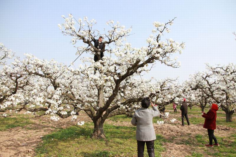 梨花授粉是丰产丰收的关键之举。多年来,砀山果园场给予高度重视,及时召开动员会并制定工作方案,切实加强授粉期间的职工指导、管理和服务,确保有序有效进行。