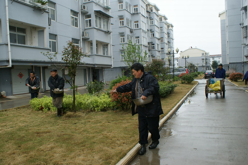 随着东方花园小区保障房的全面建成和“绿化家园”提升行动的深入开展,大圹圩农场着力打造生态宜居的职工幸福生活小环境,场部现已实现了绿化家园“全覆盖”,绿化面积较活动前增加5倍多,小区绿化管护任务由此也越来越重。东方物业公司主要承担场部环卫保洁、供电供水、有线电视、调频广播等基础性管理服务工作,同时承担小区花草树木草坪的施肥打药、除草防病、修剪等四季管护任务,此次乘着“清明时节雨纷纷”,组织全体员工开展突击劳动,为小区绿化园普施了一遍肥料。(夏庆芳)