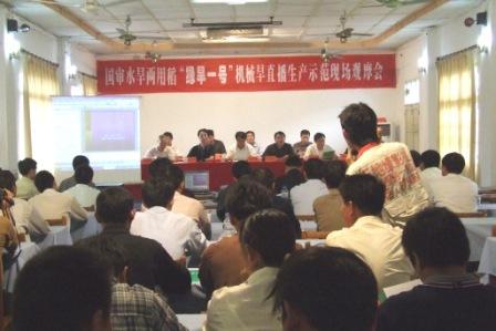 9月26日,国审水旱两用稻----“绿旱一号”机械旱直播生产示范现场观摩会在龙亢农场举行。“绿旱一号”育种人朱启升研究员、安徽省各地市县的水稻专家和农技人员70多人参加了现场观摩会。