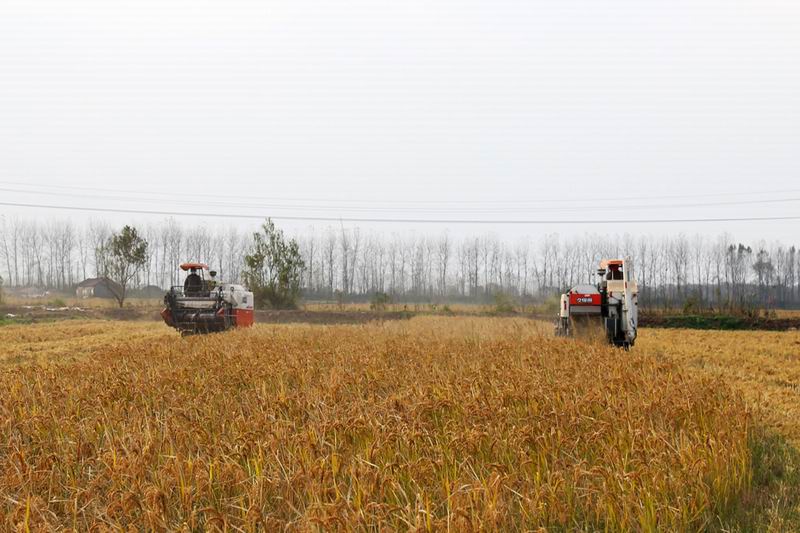 连日来,华阳河农场抓住睛好天气,调度人力机械,全力投入水稻抢收工作,截至