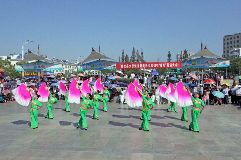 华阳河农场开展老年节日健身活动,组织代表队参加了宿松县举办的重阳节太极健身健美展演活动,表演了扇子舞《我的祖国》和48式《太极拳》,深受组委会好评和现场老年观众嘉许。同时,农场着力改善民生,关爱老人身心健康,在新小区建起文化广场,提供老人健身场所,增添健身健美器材,鼓励支持老人参加太极等健身活动。大圹圩农场为营造“尊老、敬老、爱老” 的社区氛围,重阳节当天以弘扬敬老美德为主题举办文体娱乐比赛活动,包括象棋、乒乓球、扑克牌及各种趣味竞赛,农场社区老同志及居民踊跃参赛,弘扬了传统美德,繁荣了农场文化。