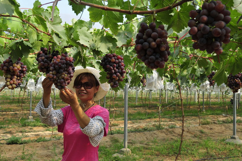8月上旬,安徽农垦砀山果园场高效设施大棚园内一派繁忙,职工正在将一串串鲜艳成熟的葡萄采摘装箱,由皖垦果业有限公司销往全国各地市场。该场自2010年以来分三期建成葡萄高效设施大棚110亩,通过统一化生产、标准化管理和规模化经营,实现了一年建棚、两年见效、三年丰产的目标。今年一期、二期大棚葡萄亩产分别达1300公斤和800公斤,出园售价达16/公斤以上,初步显现出高效农业的示范带动效应。