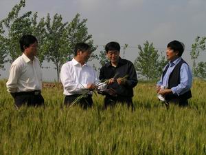 滁州市农委领导和小麦专家在潘村湖农场考察(图)
